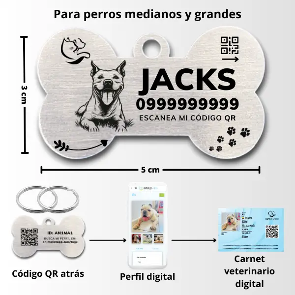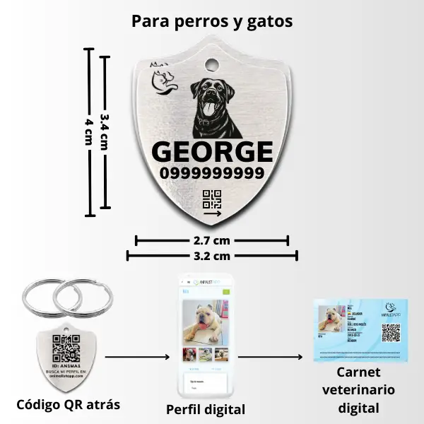 Encuentra nuestras plaquitas inteligentes con codigo QR, microchips de identificación subcutaneo con cédula animal y todo lo que necesitas para mantener a tu peludito protegido e identificado.